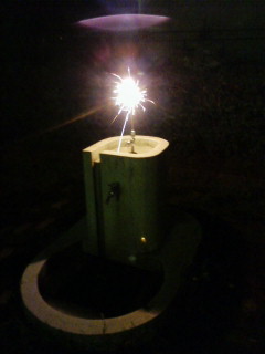 わからない人の為に解説。公園の水道の上部にある水飲んだり目洗ったりするアレに花火、突き刺さってます。